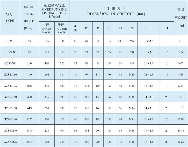 GCS滾柱式雙向離合器